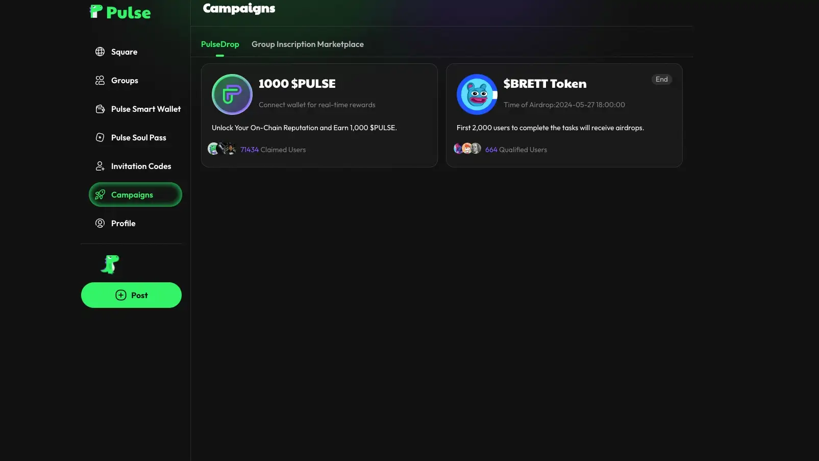 - Earn Rewards: Participate in activities like posting content and completing tasks to earn $PULSE tokens.