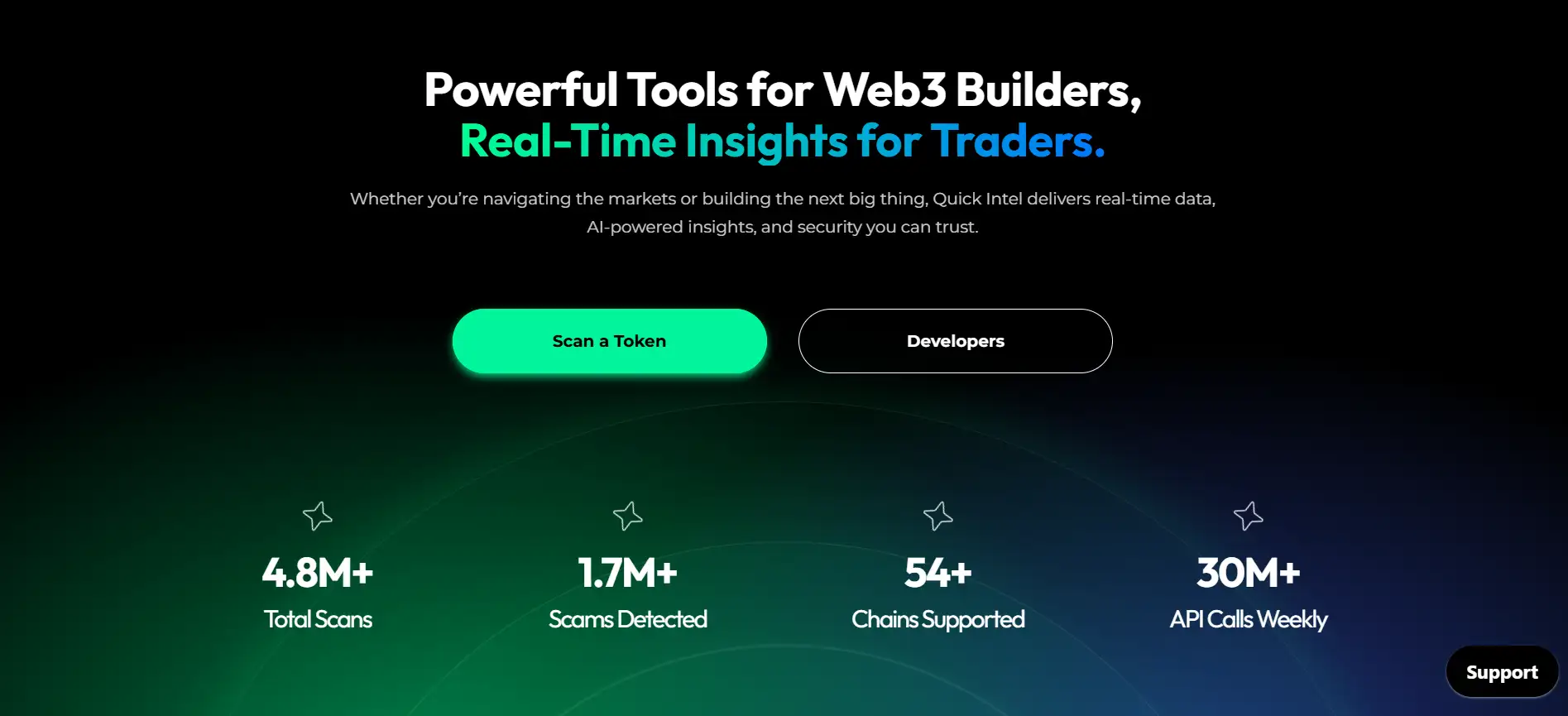 Quick Intel is a powerful Web3 security platform that provides real-time smart contract analysis, token scanning, and a suite of AI-enhanced tools for traders and developers alike. As the decentralized finance ecosystem expands rapidly, ensuring user safety and transparency has become a critical necessity. Quick Intel was built with a mission to minimize scams and maximize informed trading decisions by analyzing blockchain data across 50+ chains.