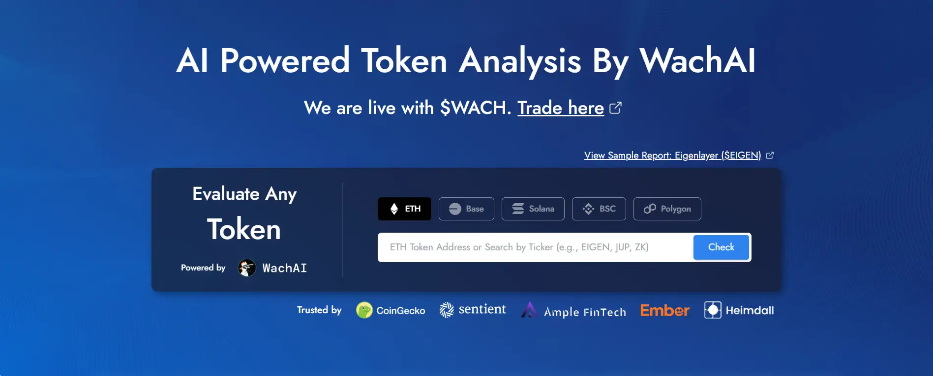 - AI-Powered Detection: Uses WachAI to conduct deep code analysis, simulate transactions, and flag malicious or suspicious token behavior in seconds.