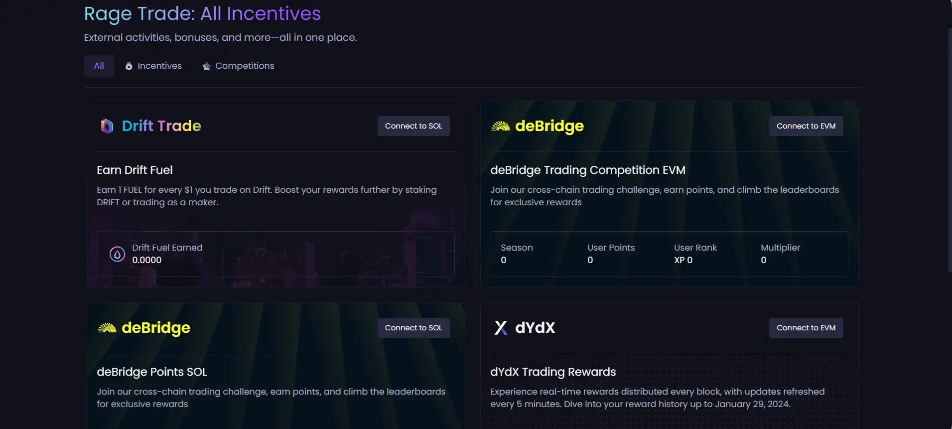 - Incentive Programs: Participate in point farming, trading competitions, and airdrop farming directly through the Rage platform.