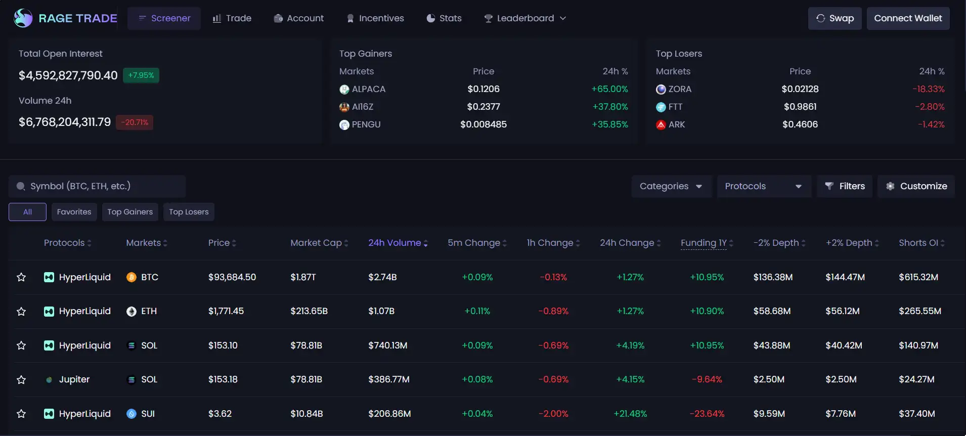 - Best Execution Routing: Rage intelligently selects the best price, funding rate, and fees available, ensuring optimal trading outcomes for users.