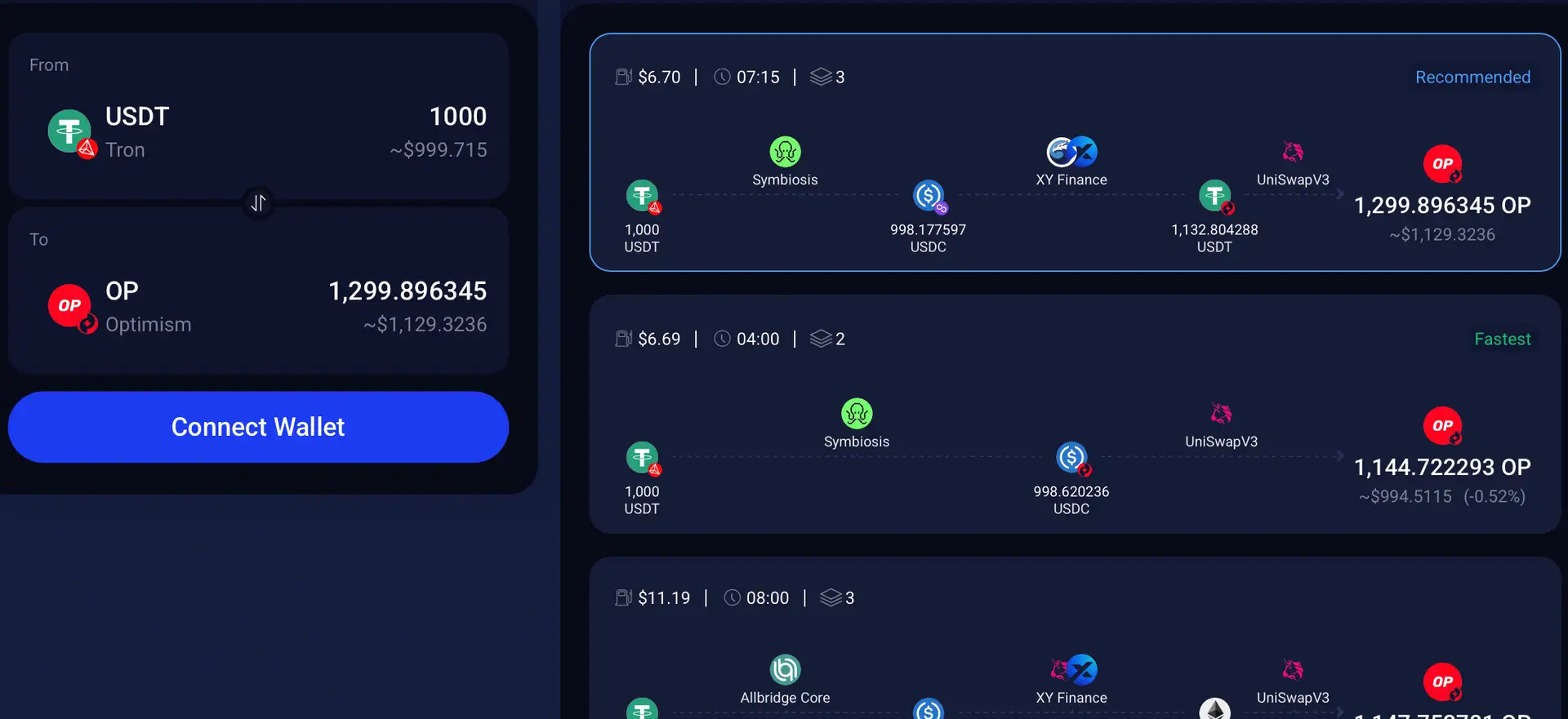 - All-in-One Aggregation: Supports over 70+ blockchains, 120+ DEXs and bridges, and 25+ wallets with seamless UI.