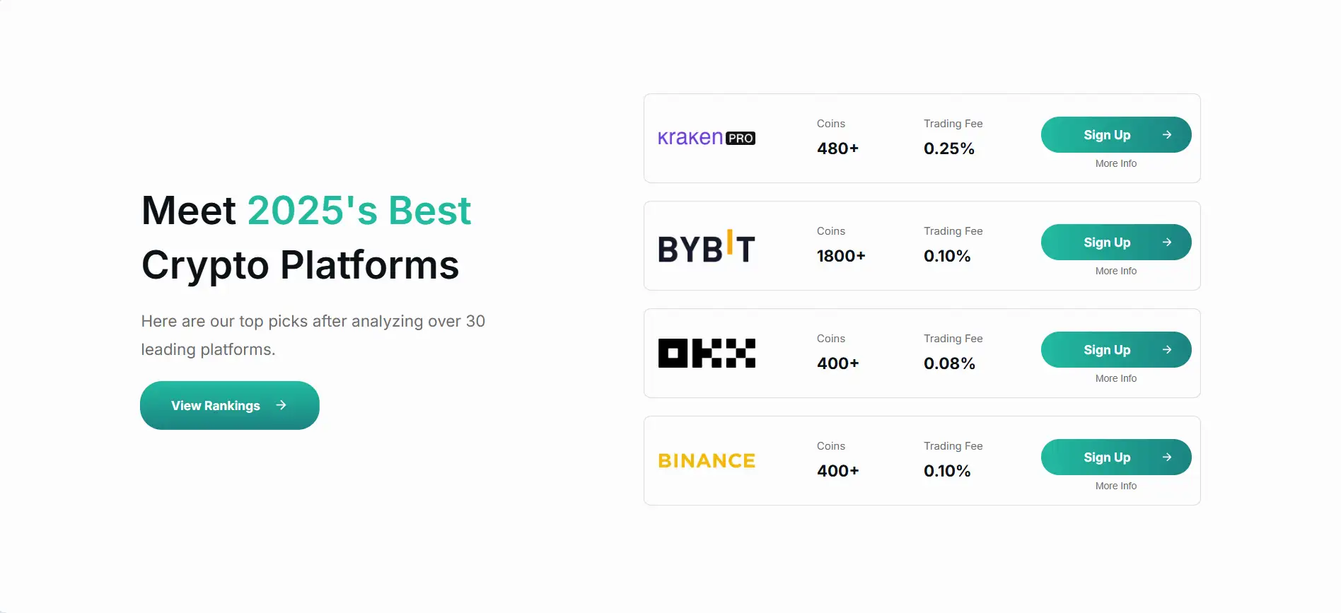 - Read Platform Reviews: Every exchange listed on RankFi has a full review page. Click on any exchange like Kraken or Bybit to learn about its features, pros, cons, and fee structure.