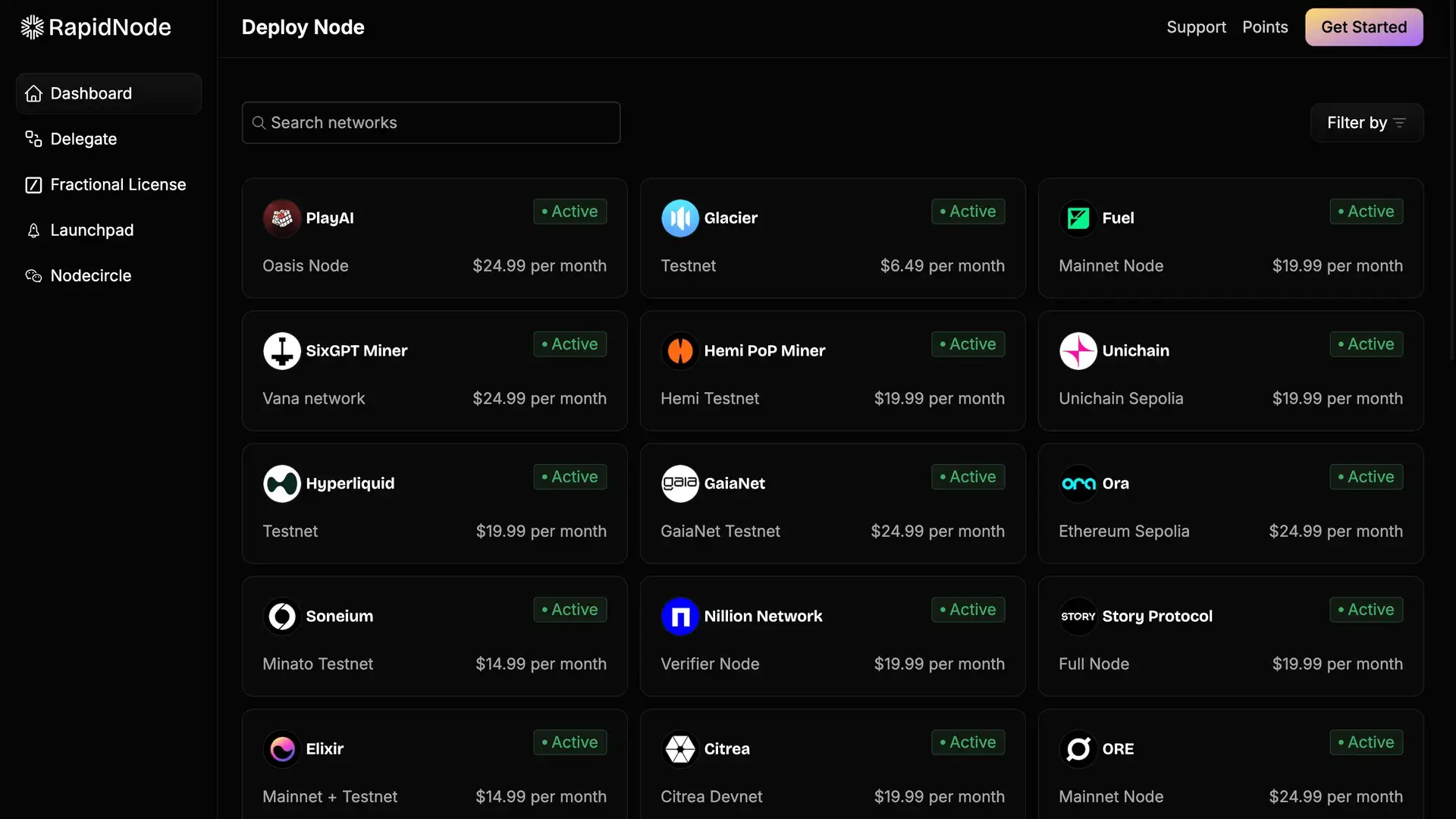 - User-Friendly Interface: RapidNode's intuitive design ensures that even non-technical users can navigate the platform effortlessly, deploy nodes, and manage their blockchain activities without any coding skills.