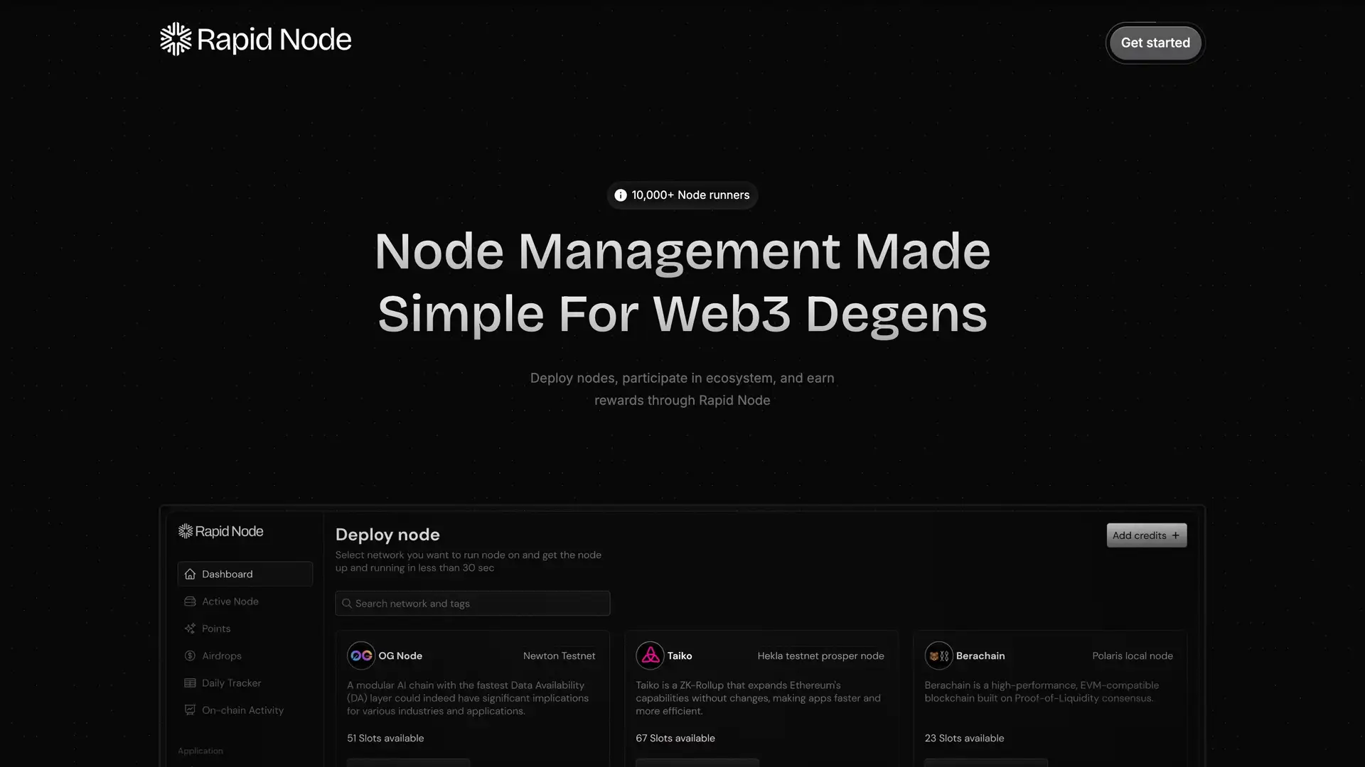 - RapidNode simplifies blockchain node deployment with its exclusive one-click setup feature, allowing users to deploy nodes in seconds without coding skills. Unlike other platforms, RapidNode ensures a seamless experience by integrating intuitive tools for monitoring and managing nodes, making it accessible for both beginners and experts. Learn more at RapidNode.