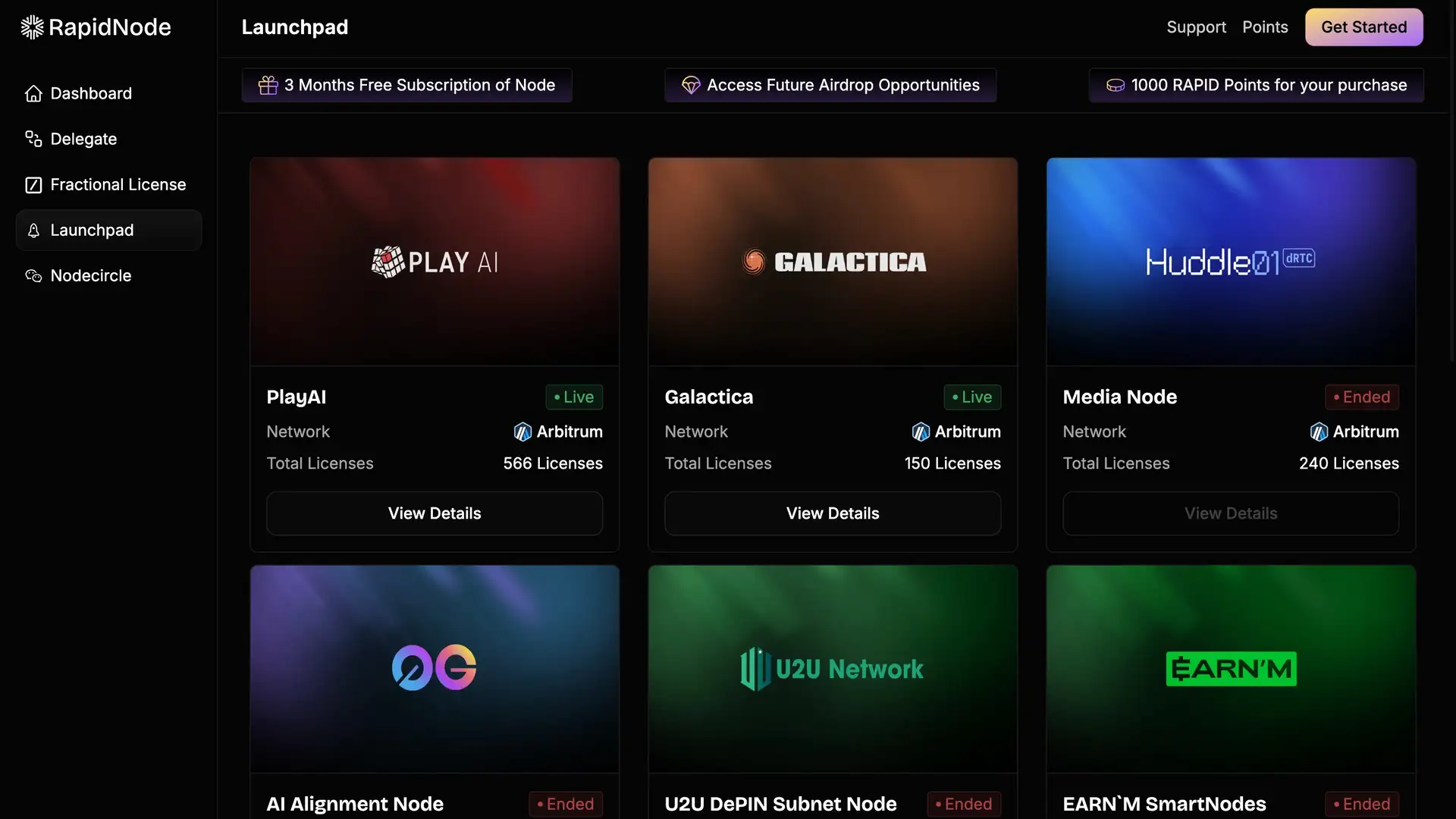 The platform supports a wide range of blockchain networks, including emerging and established ecosystems such as Taiko, Waku, Rivalz, Babylon, IoNet, Warden, Berachain, Fuel, Avail, Pryzm, and Linea. This comprehensive support reflects RapidNode’s dedication to inclusivity, allowing users to explore various blockchain ecosystems without being tied to a single network. By providing access to multiple chains, RapidNode enables users to diversify their blockchain activities and maximize their participation in staking, governance, and other network activities.