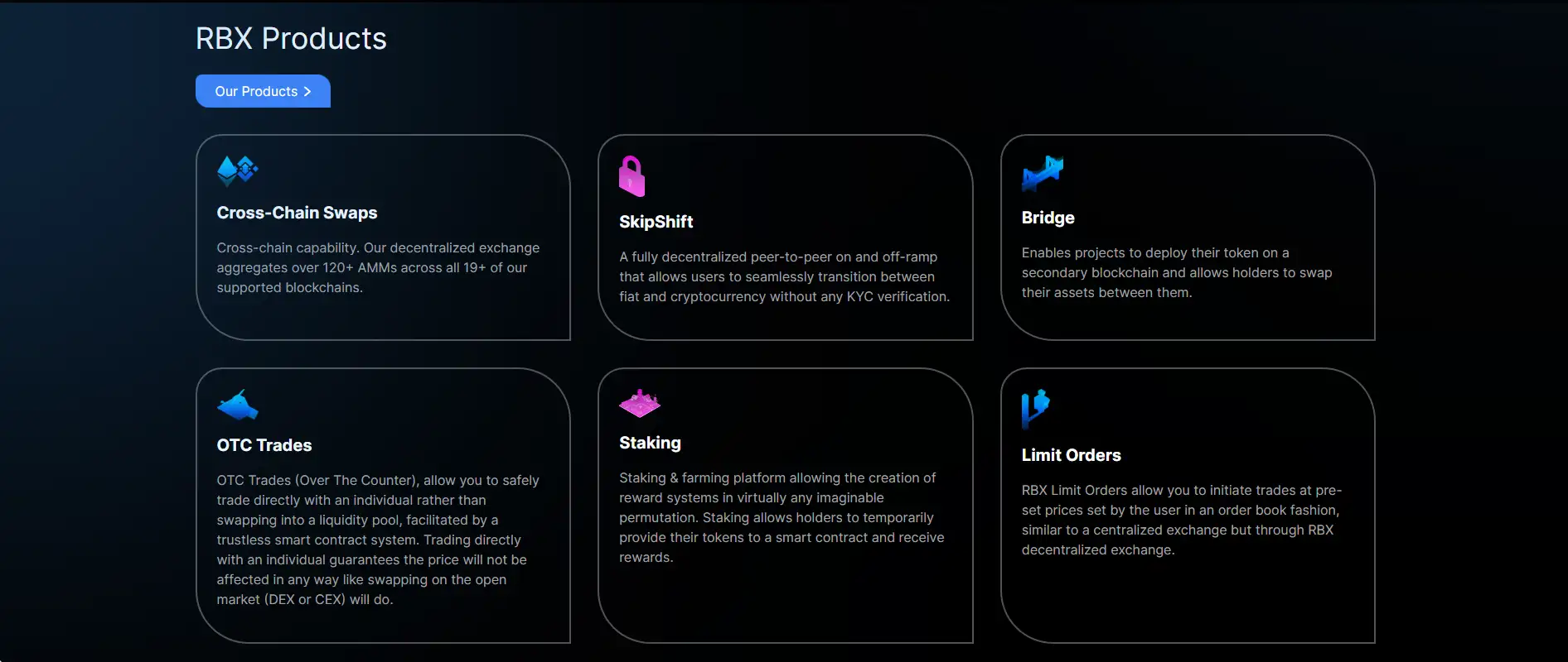 The RBX Ecosystem today includes a powerful decentralized exchange (DEX) that aggregates liquidity across 120+ AMMs and 20+ chains, a revolutionary no-KYC fiat on/off-ramp via SkipShift, advanced limit and whale order functionality, OTC trading capabilities, and a launchpad dedicated to safe and vetted IDO/ICO processes. The RBX Bridge further enables seamless asset transfers between blockchains, enhancing cross-chain DeFi opportunities. Projects can deploy their tokens across multiple ecosystems effortlessly, a service critical to modern decentralized finance strategies. RBX has proven that it is not just a DEX but a fully integrated DeFi platform.