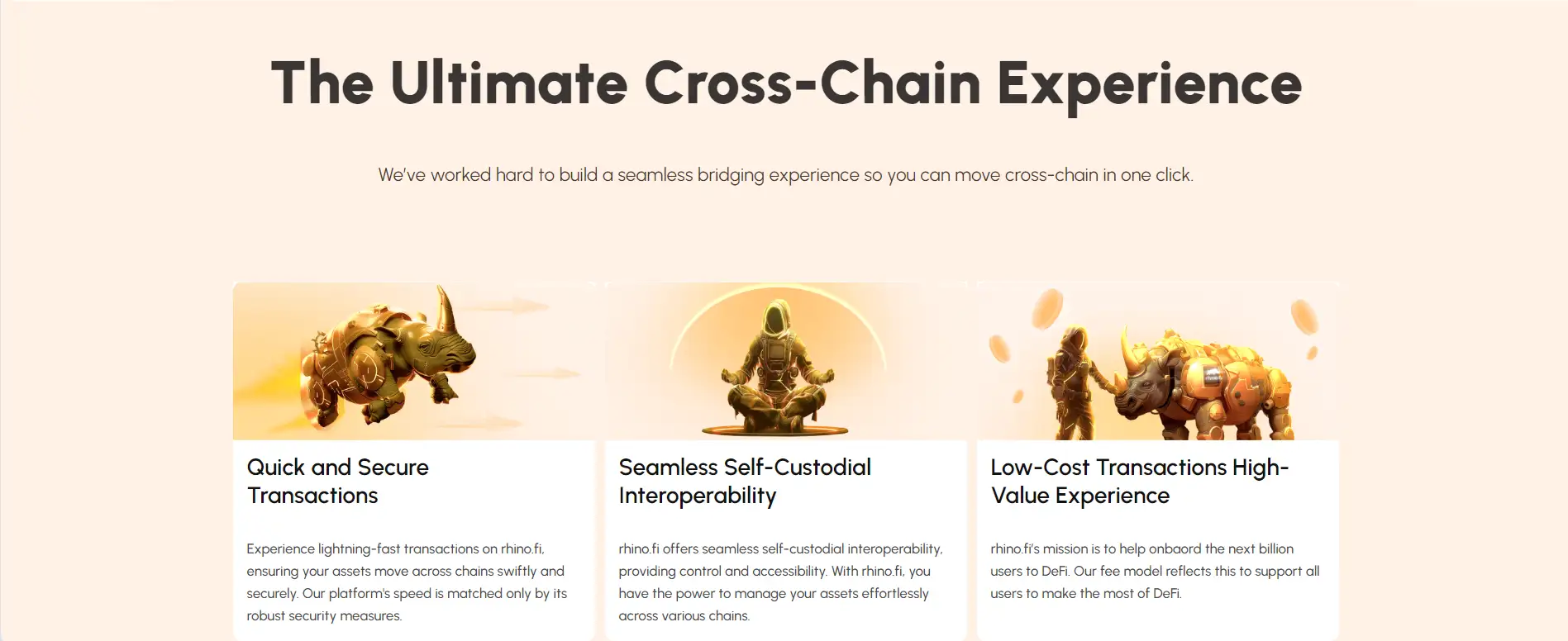 Another key feature of Rhino.fi is its self-custodial interoperability. Unlike centralized bridges that require users to give up control of their assets temporarily, Rhino.fi ensures that funds remain in users’ wallets throughout the bridging process. This enhances security and transparency, making it one of the most trustworthy cross-chain solutions in the industry.