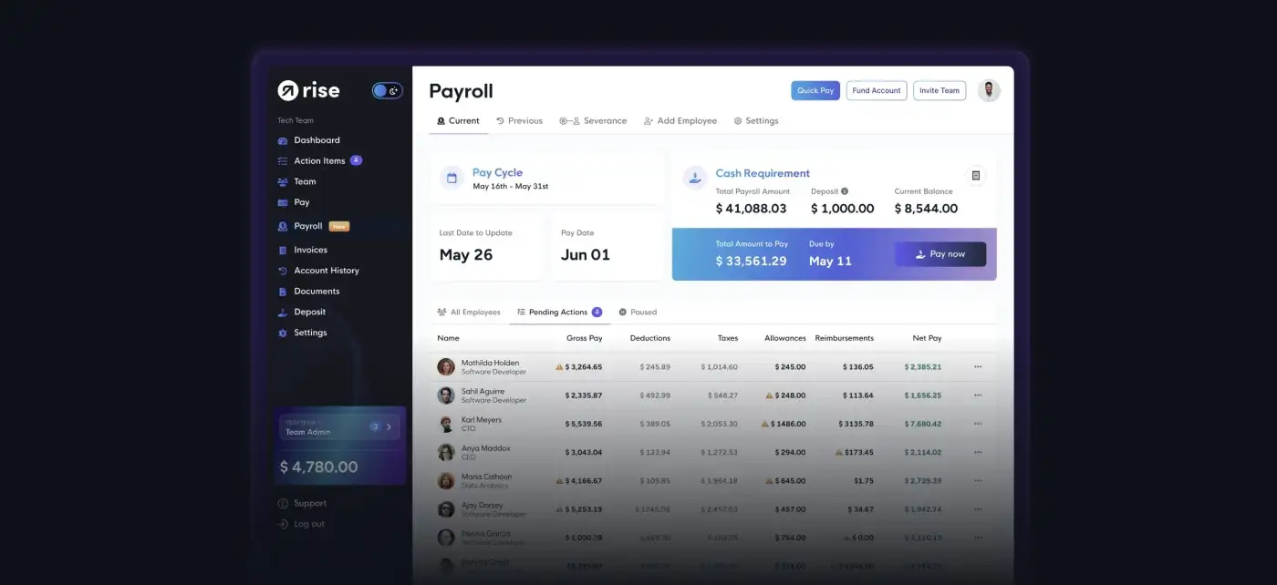 The Rise Pay or Riseworks app's interface is designed to be highly intuitive, allowing users to easily navigate, manage accounts, and conduct transactions with minimal effort.