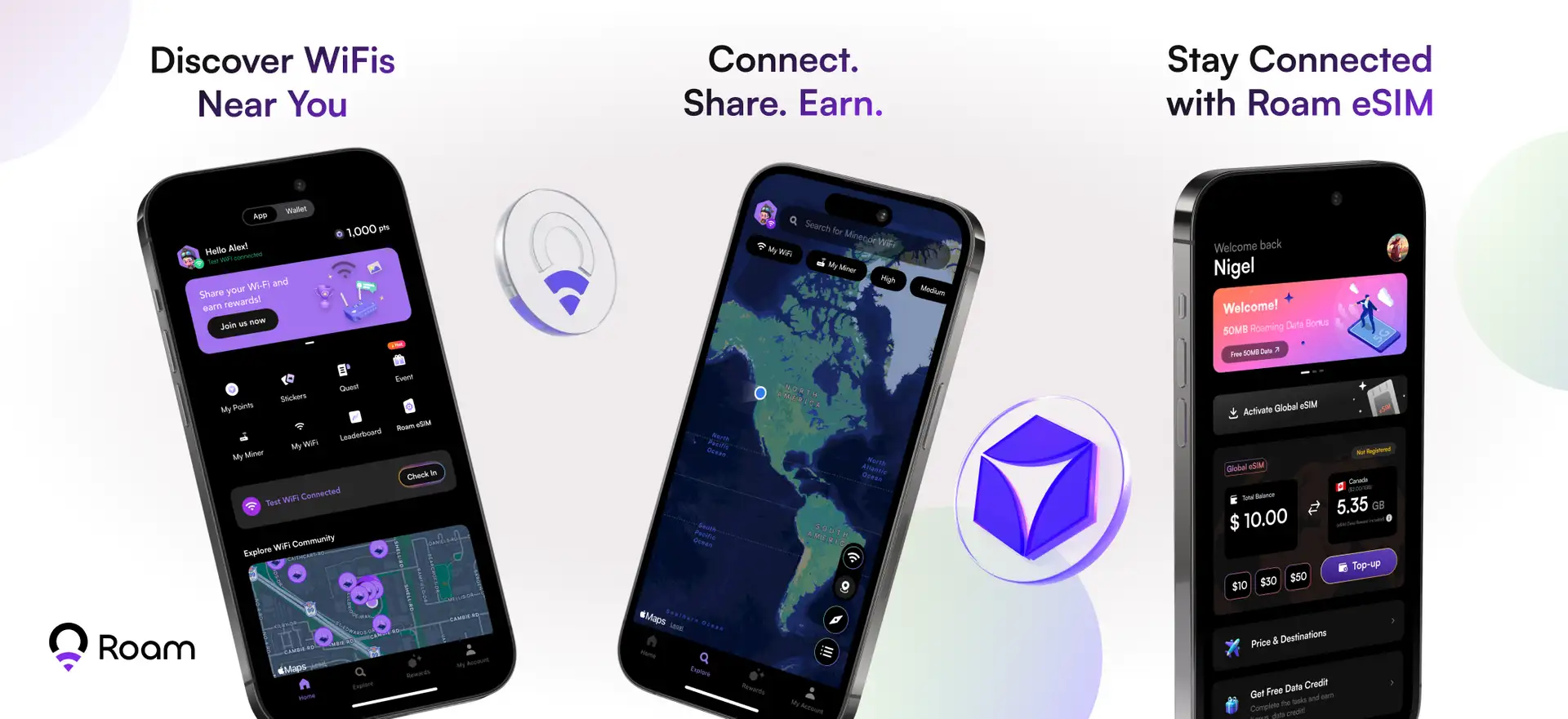 Roam by MetaBlox is a decentralized wireless network protocol designed to make global connectivity seamless, secure, and user-driven. By combining blockchain technology, DePIN infrastructure, and eSIM functionality, Roam reimagines how people connect to WiFi across borders. With more than 7.5 million hotspots and a mission rooted in decentralization, Roam transforms users from passive consumers into active contributors of a global, community-owned connectivity network.