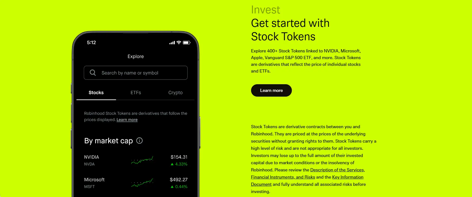 Stock Tokens on Robinhood are derivative contracts that mirror the price of major equities like Apple, Microsoft, and ETFs such as the Vanguard S&P 500. Unlike traditional stocks, these tokens do not grant ownership of the underlying shares. Instead, they offer price exposure and trading flexibility—ideal for speculative strategies. However, they also carry higher risk due to their nature as synthetic instruments.