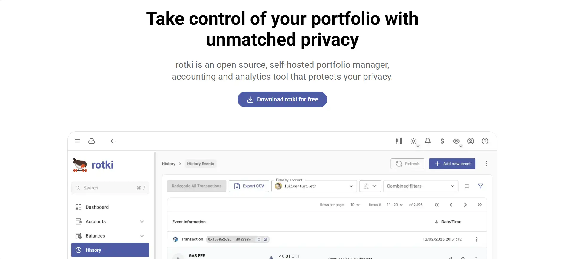 Rotki is an open-source, self-hosted portfolio tracking and accounting application designed for individuals and institutions who prioritize privacy and financial transparency. Unlike cloud-based platforms, Rotki runs locally on users’ machines, giving them full control of their financial data, which remains encrypted and private at all times. This approach makes Rotki especially relevant in an era where users are becoming increasingly aware of the implications of data sharing and surveillance in financial services.