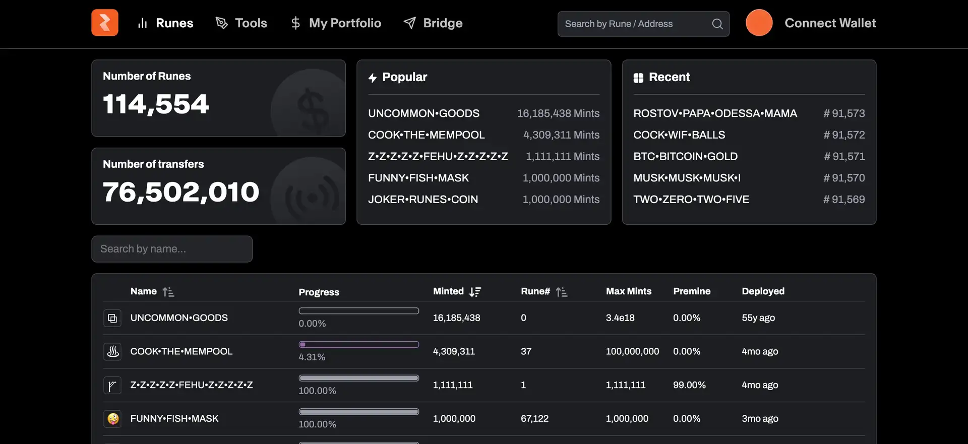 - Comprehensive Portfolio Management: RuneMine’s portfolio tool allows users to manage and track their Bitcoin and Runes assets with ease, providing detailed analytics to support informed decision-making.
