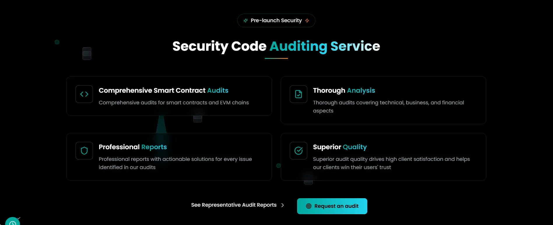 - Multi-Layered Protection: Combines pre-launch audits, penetration testing, and post-deployment monitoring into a comprehensive security package.