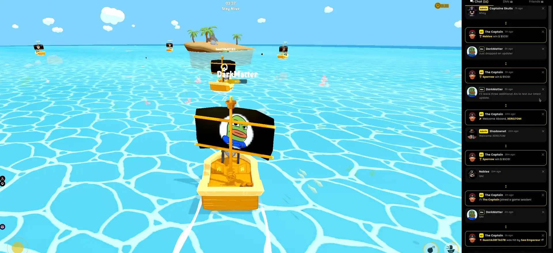 Preloading $SOS tokens into your ship before joining events acts like your buy-in. It’s what makes Sea of Skulls competitive and rewarding. In Time-Attack, the more ships you sink, the more treasure you collect. In Battle Royale, the last pirate sailing walks away with everyone’s $SOS. This design fuels the in-game economy and rewards skill and risk-taking.