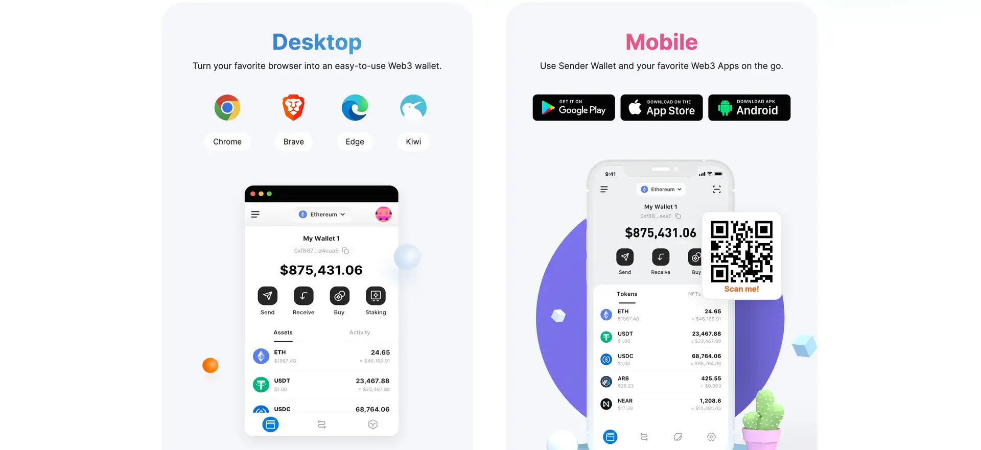 - Cross-Platform Availability: Sender Wallet is available on multiple platforms, including Chrome, iOS, and Android, allowing users to access their assets from anywhere.