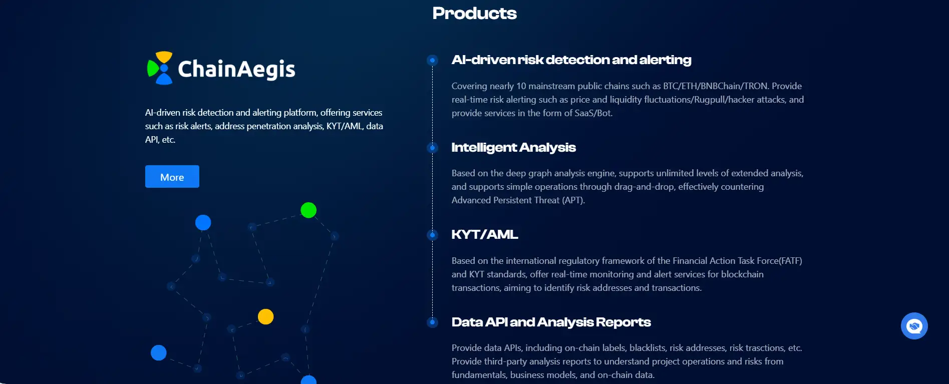 Beyond auditing, the team offers a real-time Risk Alerting and Blocking system powered by its proprietary platform, ChainAegis. This AI-driven tool provides detection of rugpulls, liquidity shocks, and suspicious on-chain behaviors across over 10 major blockchains including Ethereum, BNB Chain, TRON, and Bitcoin. It operates via SaaS, APIs, and bot integrations, serving developers, users, and ecosystem partners alike.