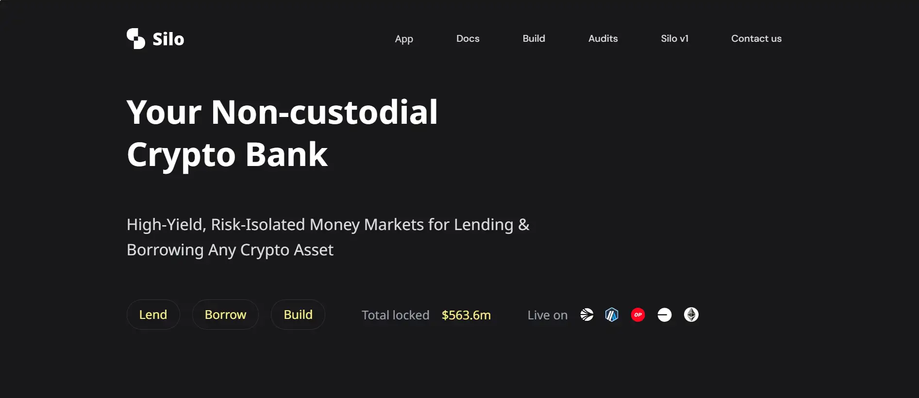 Silo Finance is a cutting-edge decentralized protocol offering risk-isolated lending markets for a wide range of crypto assets. Designed to maximize yields while minimizing systemic risk, Silo Finance empowers users to lend, borrow, and build within a fully non-custodial, highly secure ecosystem where each market is isolated and programmable.