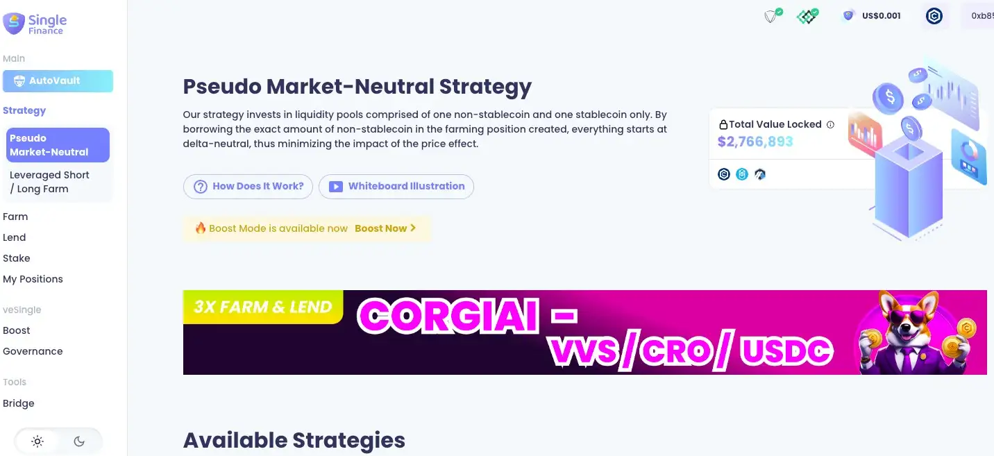 Single Finance is designed with user-friendliness in mind, making it accessible even to DeFi newcomers. The platform offers a clean and intuitive interface, along with automated strategies that simplify the investment process, ensuring a smooth experience for all users.