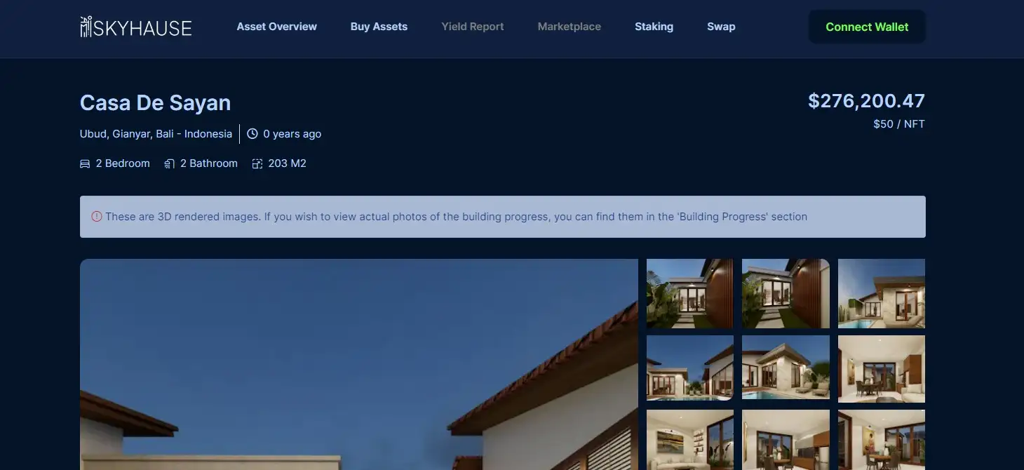 - Browse Real Estate Assets: Explore the range of tokenized real estate assets available on the platform. Each property is represented by NFTs, with detailed information provided for each asset.