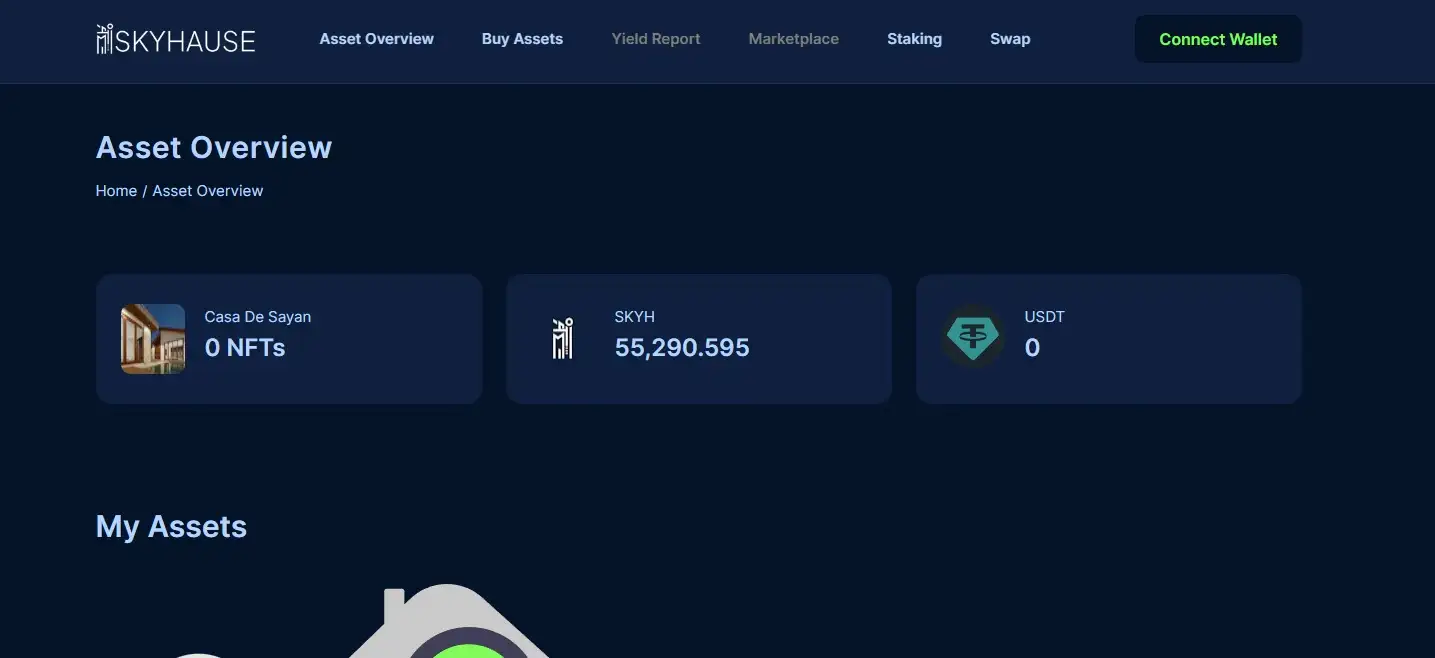 - Invest: Select the real estate assets you want to invest in, and use your $SKYH tokens to purchase fractional ownership. Your ownership will be recorded on the blockchain, providing transparent and secure proof.
