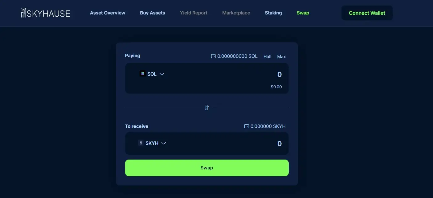 - Acquire $SKYH Tokens: Purchase $SKYH tokens on a supported exchange or directly through the platform to participate in fractional real estate investments.