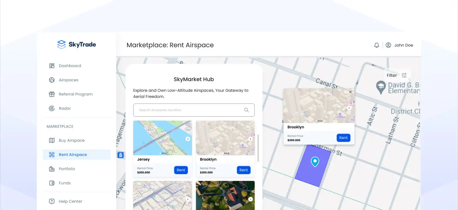- Airspace Monetization: SkyTrade allows airspace owners to lease their airspace for drone operations, opening new income streams for individuals and organizations alike.