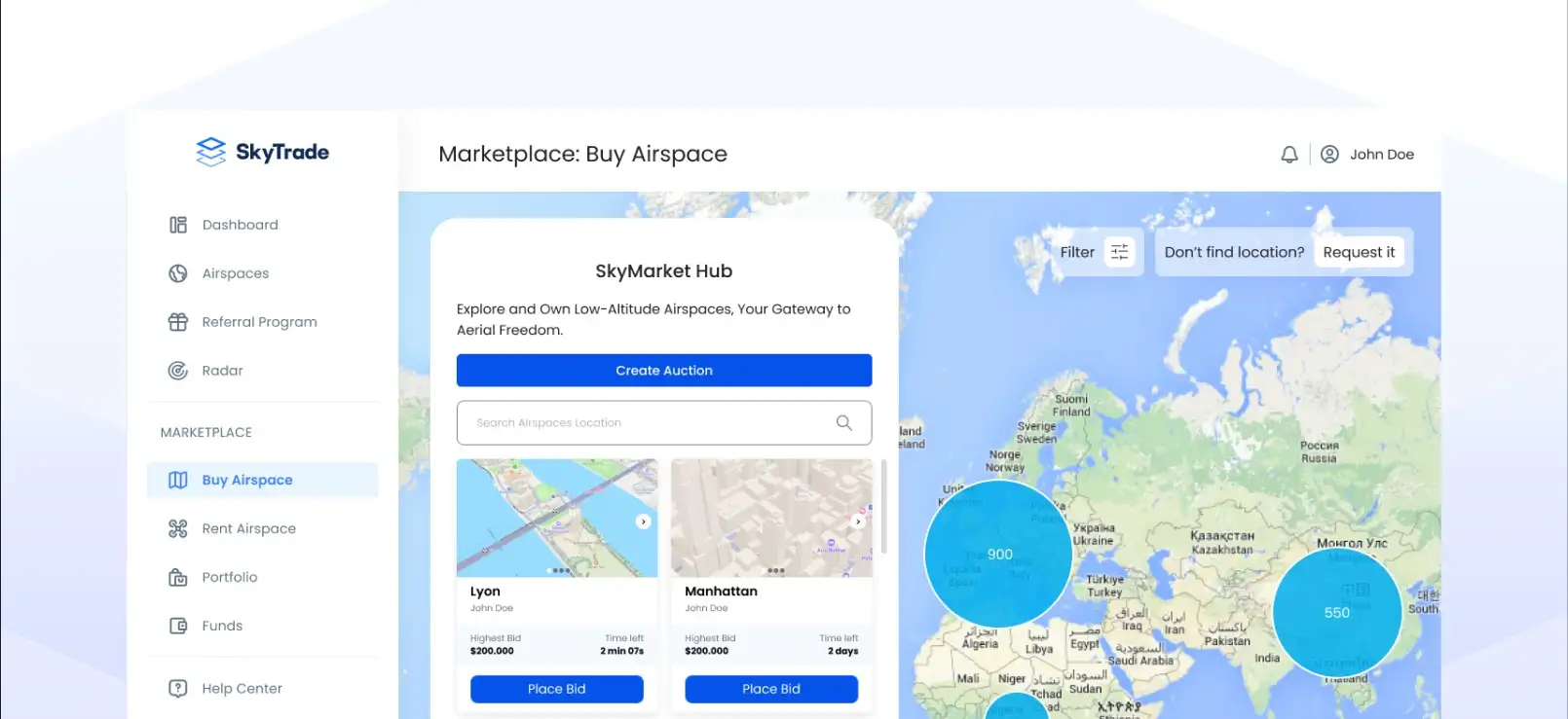 - Global Marketplace: The platform connects airspace owners with businesses and governments around the world, facilitating seamless transactions for airspace leases.