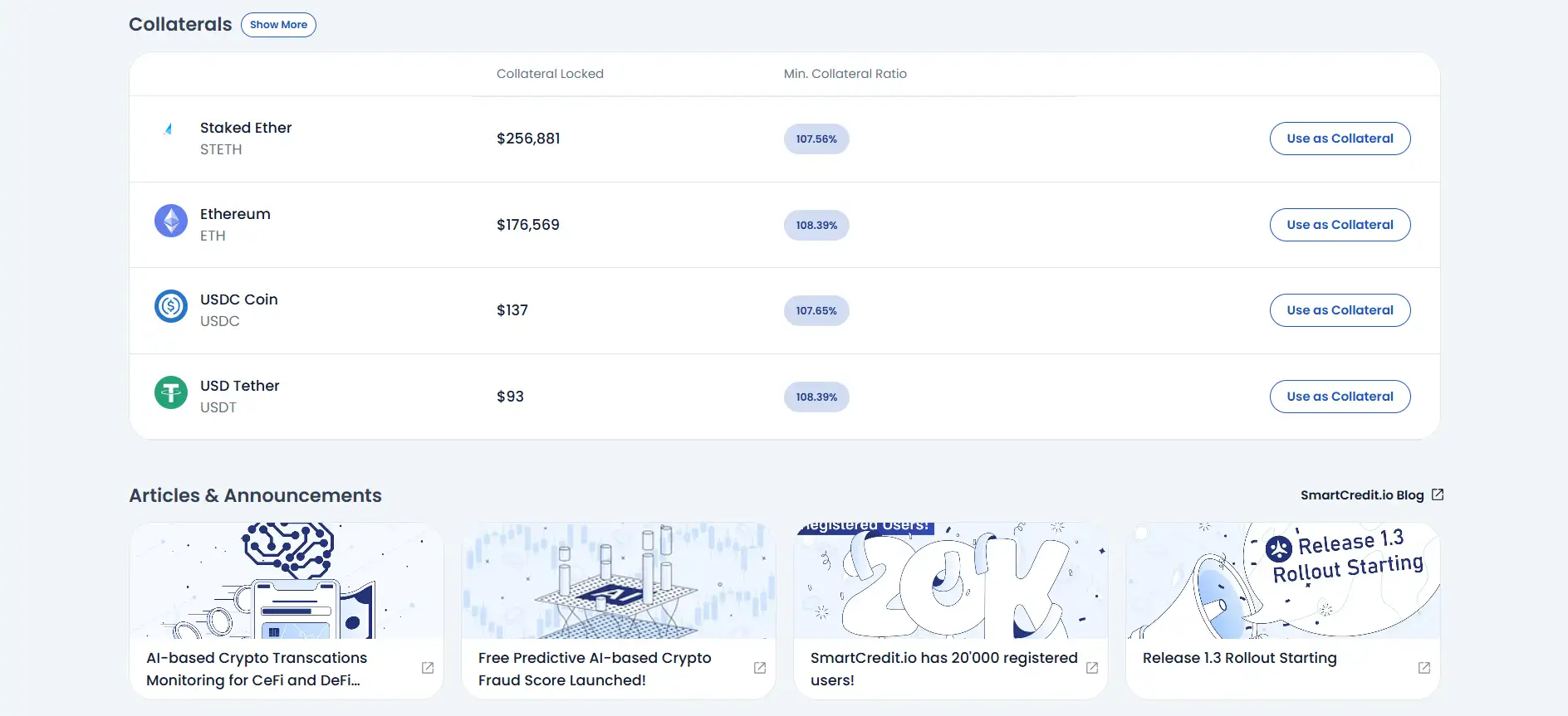 SmartCredit.io is an AI-driven, self-custodial lending platform transforming decentralized finance with fixed-term, fixed-interest-rate loans and personal fixed-income solutions. Through SmartCredit.io, users gain predictable lending and borrowing experiences, access robust staking rewards, and interact securely with a fully decentralized infrastructure that offers unprecedented control over assets.