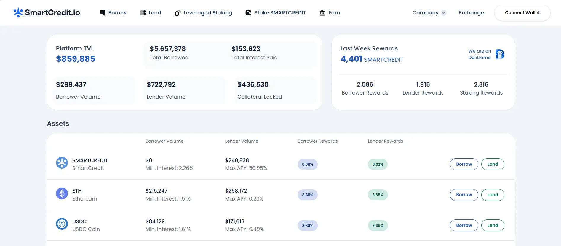 - Choose Your Action: Start lending, borrowing, staking SMARTCREDIT, or leveraging your staked assets.