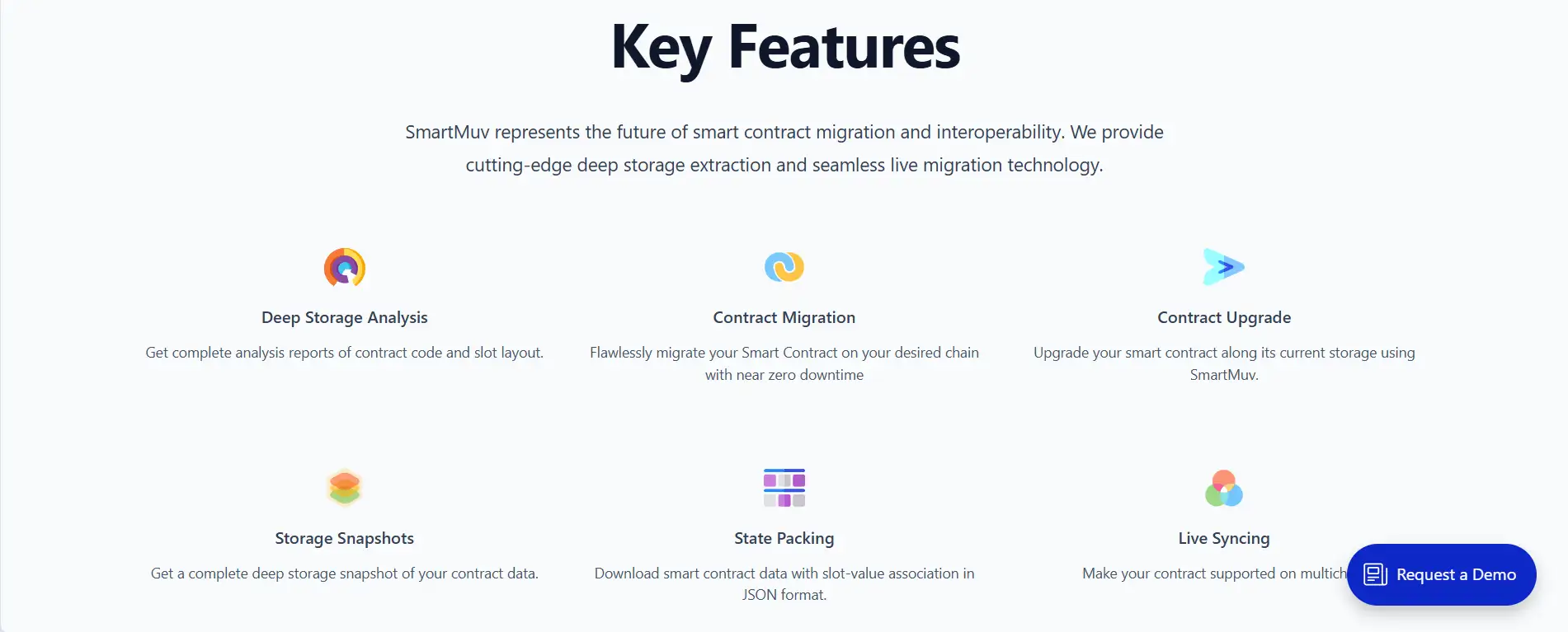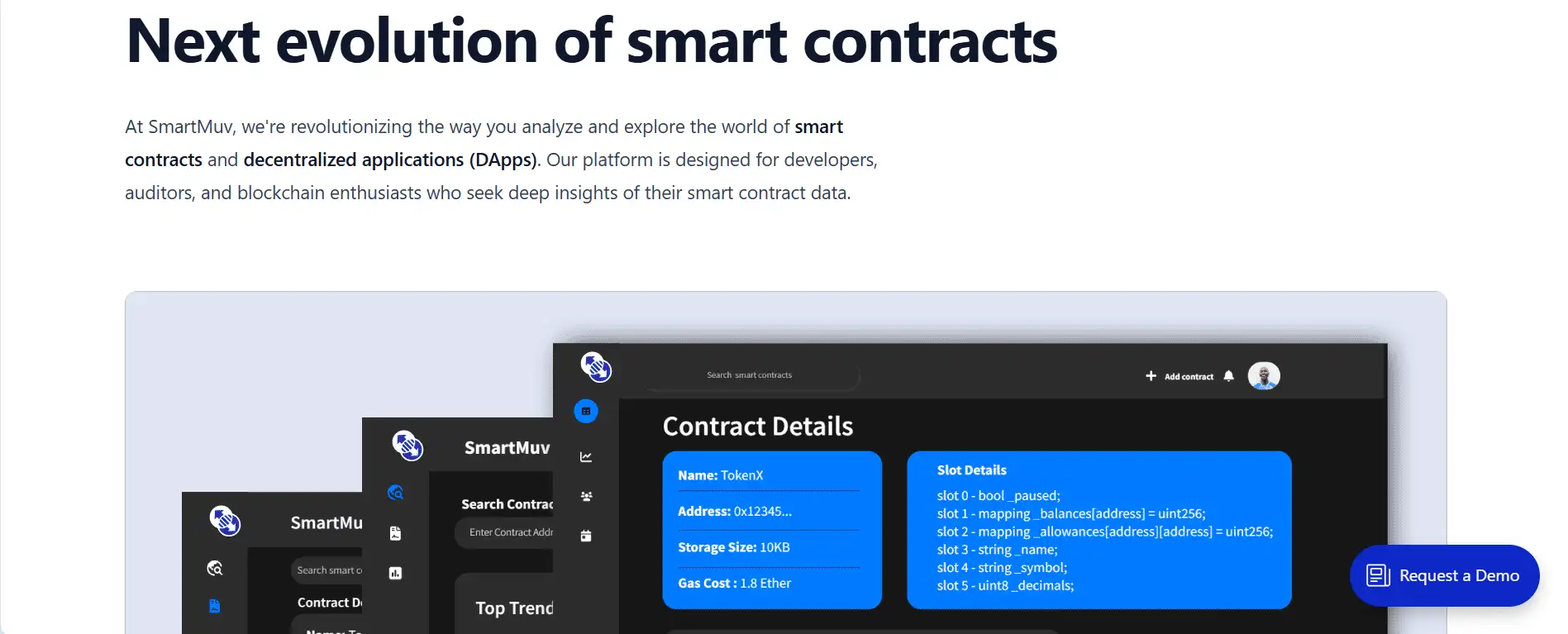 SmartMuv provides tools for analyzing smart contract state, extracting deep storage data and migrating contracts across chains, ideal for auditing and game dev.