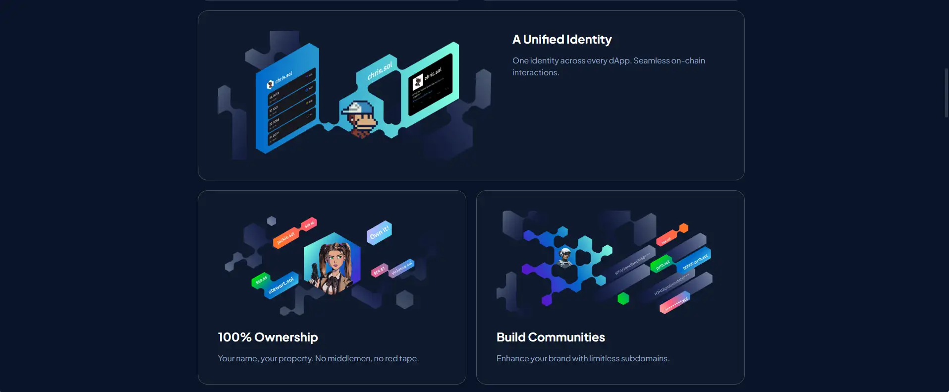 - DeFi and AI Compatibility: Use .sol names for everything from DeFi wallets to decentralized AI agents, making complex systems more intuitive.