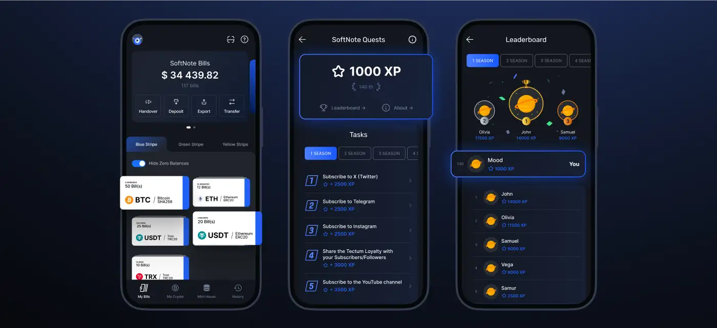 - Mint, Fill, Send, and Receive SoftNotes: The app’s core functionality enables seamless creation and usage of SoftNotes to manage crypto assets effectively.