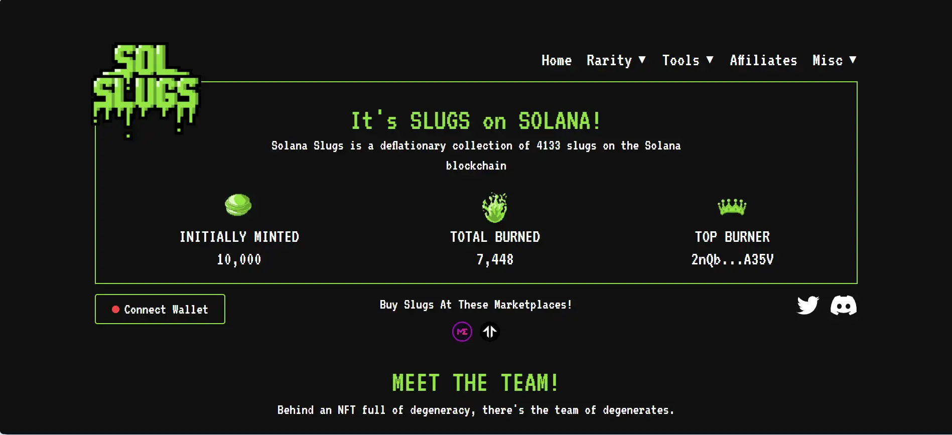 Sol Slugs is a free-mint deflationary NFT collection on the Solana blockchain, built by the community and designed for long-term value and utility.
