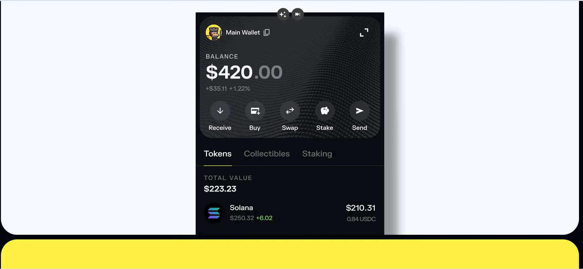 - Built-In Staking: Stake SOL directly from the wallet and start earning rewards without needing to use external platforms.