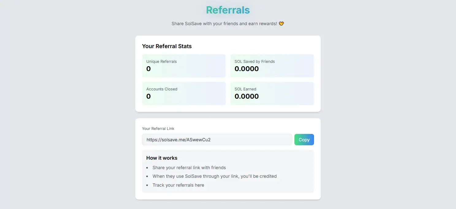 All sensitive operations such as private key usage occur solely in the user’s browser memory. No private keys are stored or sent externally, which aligns with the platform’s "use but don't trust blindly" ethos. While SolSave is completely free to use, it charges a minimal fee of 0.0001 SOL per transaction to cover processing stats.