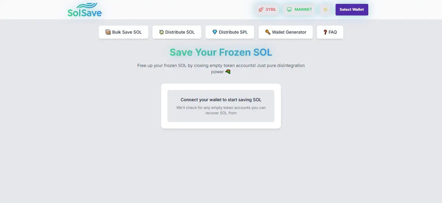 SolSave is a specialized utility platform built on the Solana blockchain, designed to help users recover frozen SOL and optimize their token account management. With tools tailored for bulk processing and efficient SOL and SPL token distribution, SolSave offers both convenience and savings for everyday users and power users alike. From wallet generation to advanced batch operations, the platform integrates essential utilities with a clean, browser-based interface.