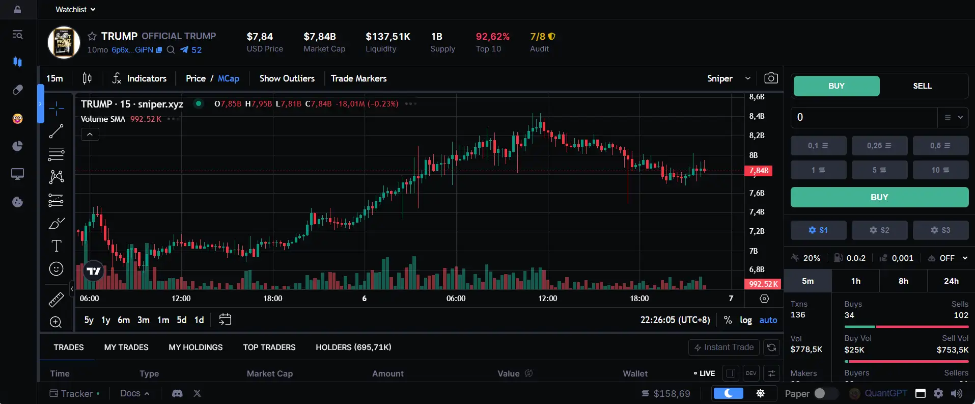 - Volume-Based Sniping Tiers: The more volume a user processes through Solsniper, the more simultaneous snipes they can execute—up to 30 for high-tier traders.