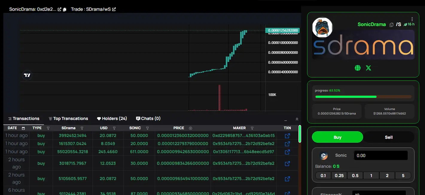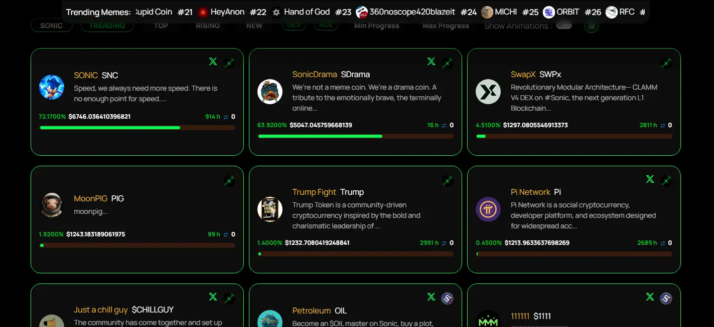 The platform enables users to mint tokens by simply selecting a name, ticker, and image, then paying a nominal fee in Sonic’s native currency. Once created, tokens are deployed on-chain, backed by a bonding curve liquidity model that adjusts token prices automatically based on supply and demand. This incentivizes early adopters with lower prices and discourages pump-and-dump behavior by enforcing pricing stability as volume grows.
