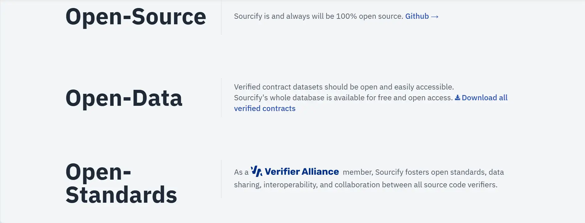 - Fully Open-Source: Licensed under MIT, Sourcify is transparent, freely accessible, and community-driven.