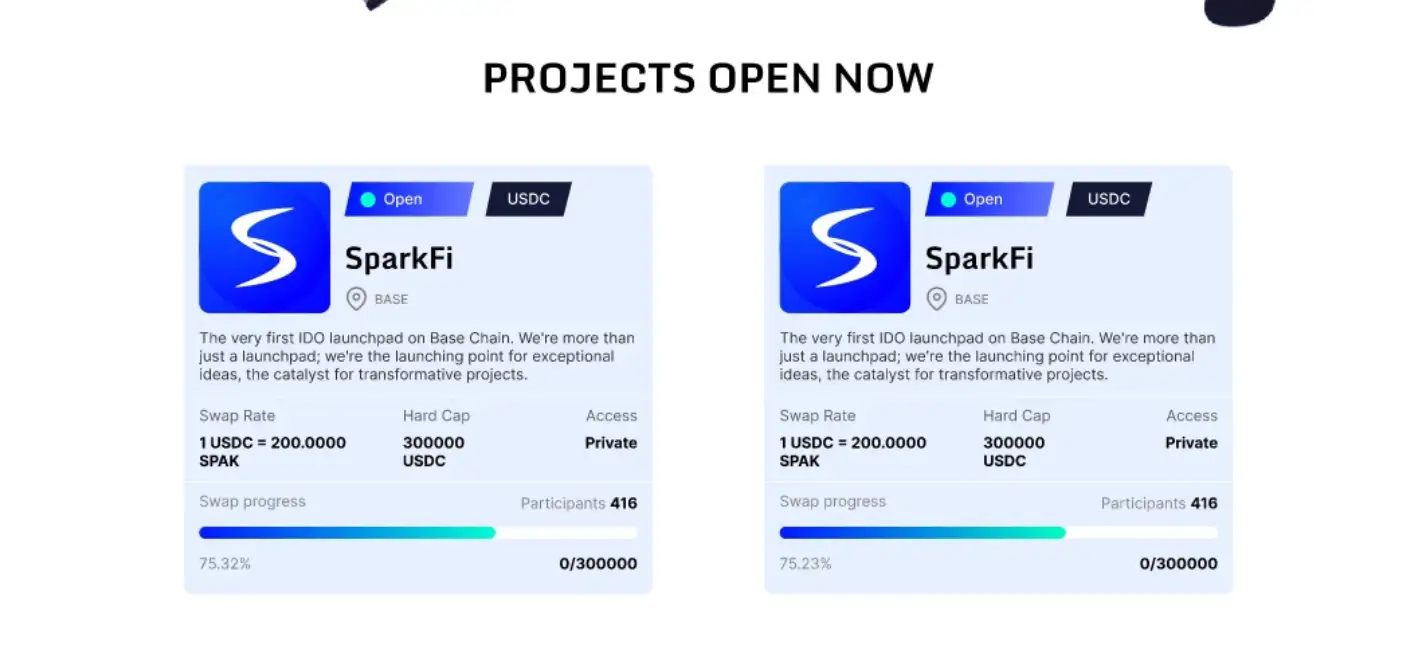 SparkFi is the first launchpad platform built on the Base blockchain, designed to support new blockchain projects in a decentralized manner. By possessing a specific amount of SPAK tokens, users can participate in any launch on SparkFi, giving them early investment opportunities in projects and early token price discounts.