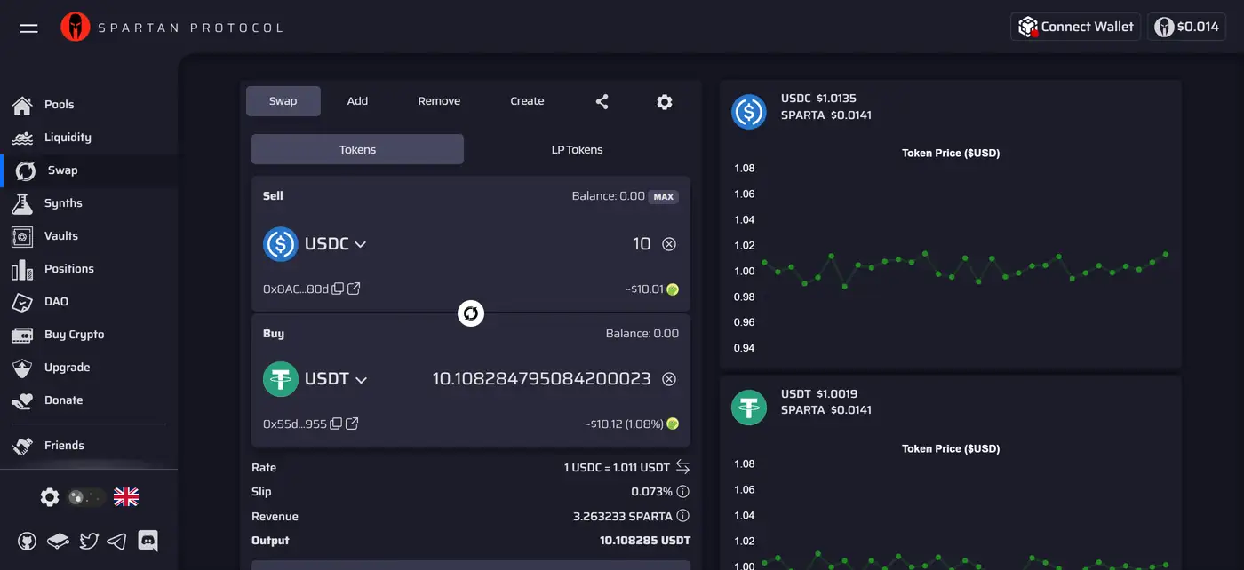 - Synthetic Assets: Spartan Protocol offers the creation and trading of synthetic assets, allowing users to gain exposure to a wide range of financial instruments without holding the underlying assets directly. This feature broadens investment opportunities and strategies within the platform.