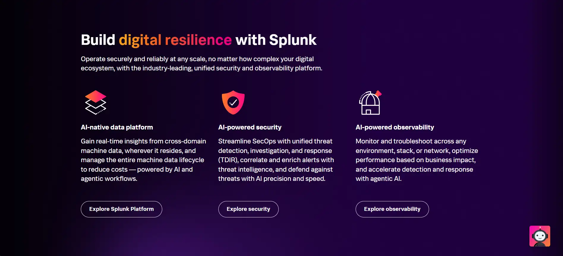 - AI-Native Platform: Splunk leverages agentic AI to streamline threat detection, automate response workflows, and enhance system observability using natural language querying and intelligent data correlation.