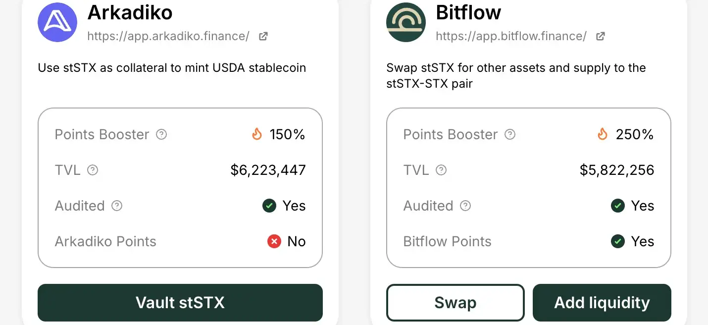 - Auto-Compounding: Rewards from stacked STX are automatically reinvested, increasing overall yield and simplifying the process for users.
