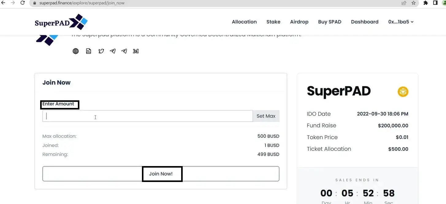 - Allocate your SPAD tokens to the desired project during the IDO phase.
