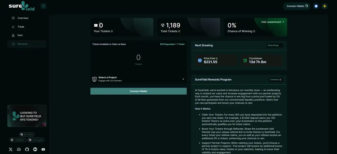 - High-Yield Blue-Chip Pools: SureYield focuses on stable, high-yield pools such as ETH/USDC, leveraging tight ranges to maximize fee generation.