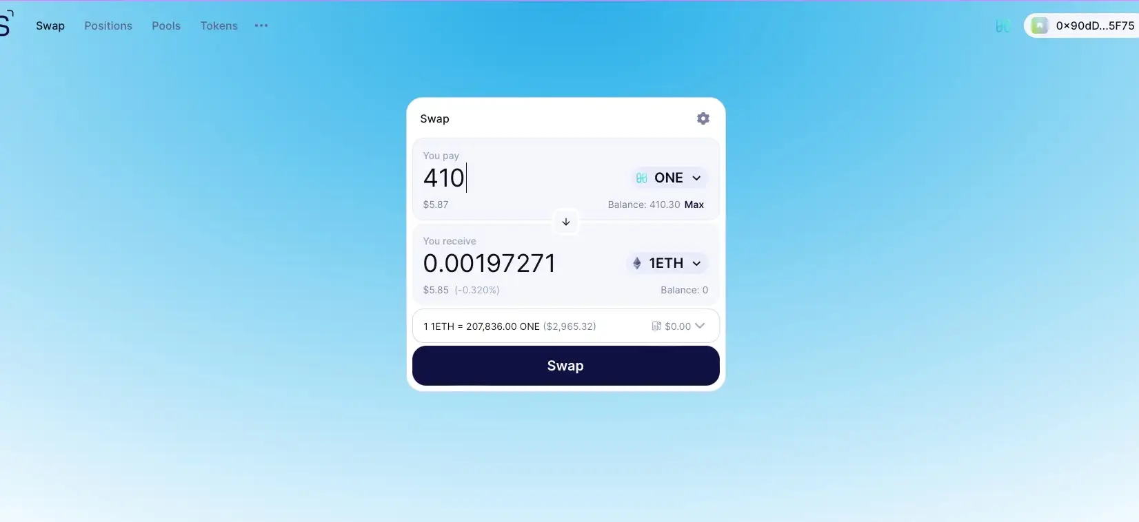 - Once connected, you can start swapping tokens by selecting the assets you want to trade and confirming the transaction. Your tokens will be swapped almost instantaneously, thanks to Harmony’s high-speed network.