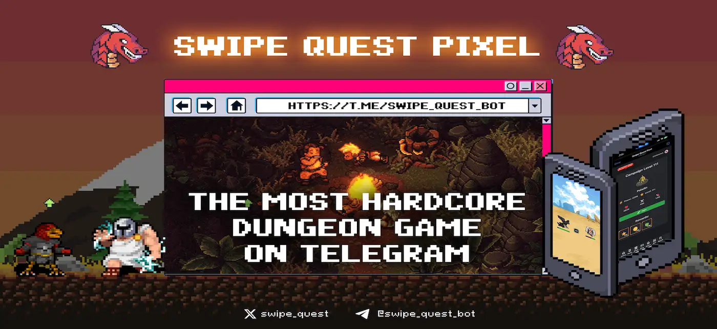 Swipe Quest Pixel is a Telegram-based mini-game where you swipe to attack enemies, level up, and upgrade your pixel monsters. To start, just visit the official game bot, tap “Start,” and begin swiping to progress and earn rewards.