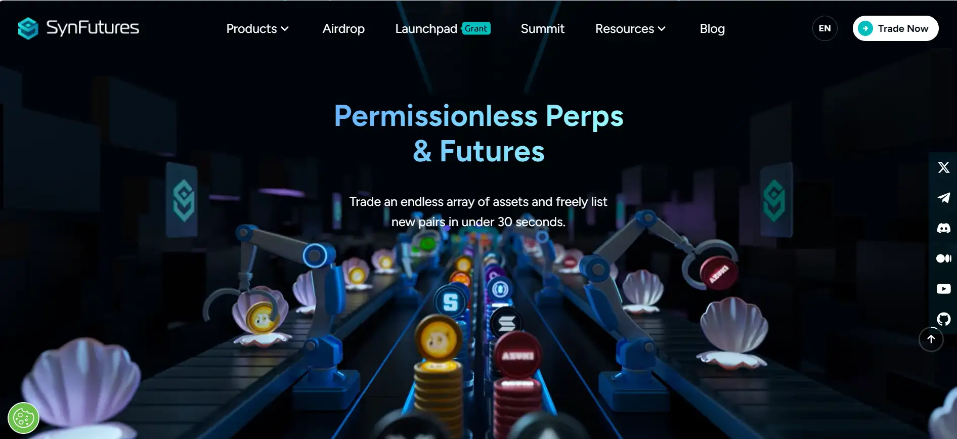 SynFutures is a leading decentralized derivatives platform bringing on-chain perpetual futures to a wide range of digital assets—from mainstream cryptocurrencies to NFTs and even Bitcoin hash rate futures. With a strong emphasis on permissionless markets, SynFutures empowers users to list and trade any asset without approval, unlocking a new era of financial inclusion in DeFi.