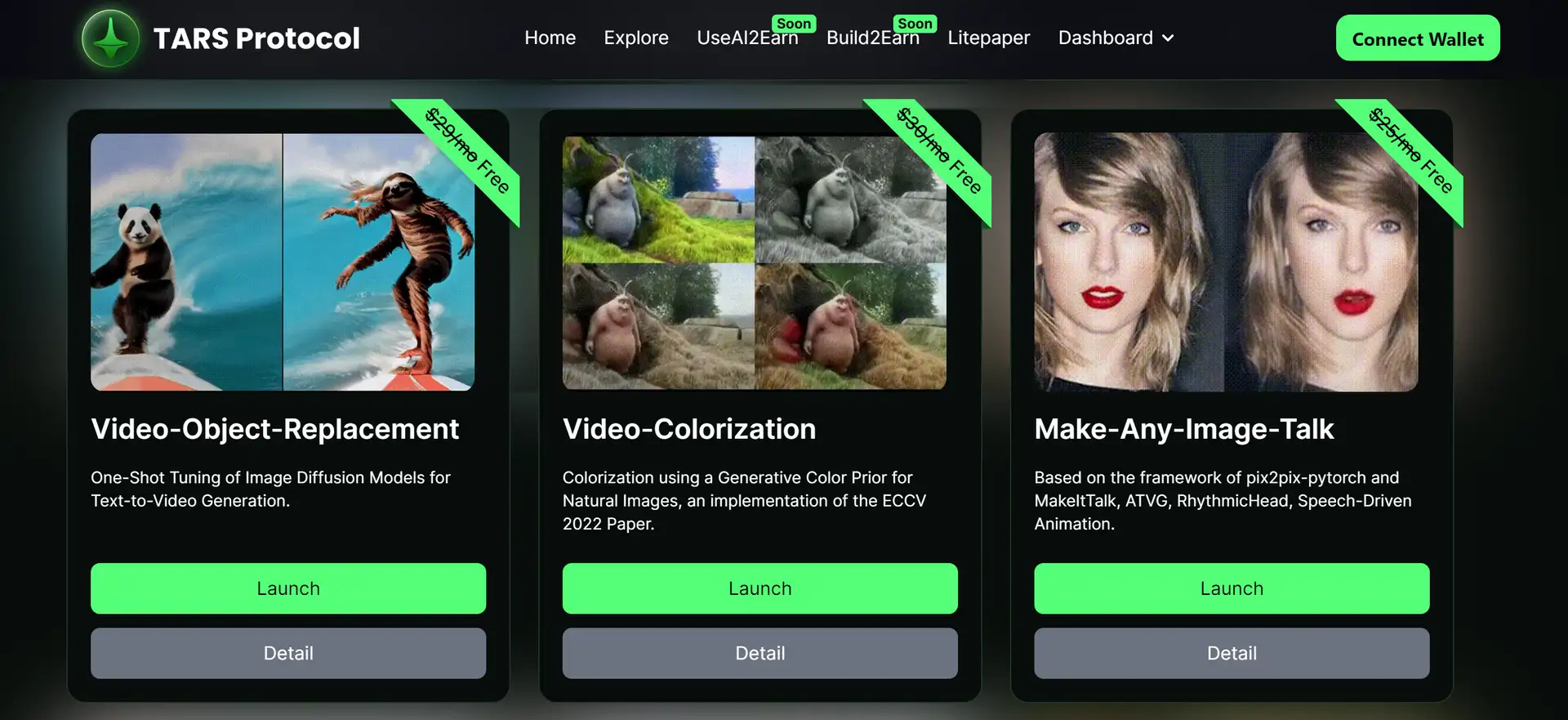 - Seamless Web3 Integration: TARS AI Hub is designed to be fully compatible with popular Web3 platforms and wallets, making it easy for users to integrate AI services into their existing blockchain projects.